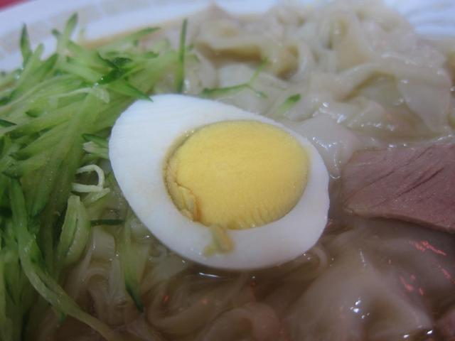 土曜の13:30に訪問。 休日だというのに待ち時間無しでカウンターの席に着くことができた。 呉のご当地グルメでもある呉冷麺を注文。 なお冷麺は800円,冷麺のワンタン入りが1000円。 今回はワンタン入りを注文した。 平たい皿で提供される冷麺。 まず真っ先に注目すべきは麺。 かなり薄い... 詳細を見る