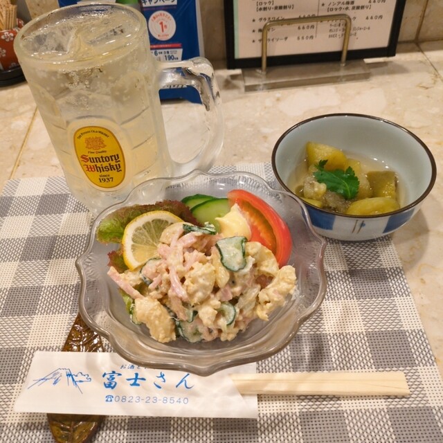 もう一杯飲みたいなとブラブラしていたところ、「富士さん」の看板を発見。屋台の「富士さん」と似た感じ。関係のある店なんかな?と思って入ってみました。聞いてみると、ママさんの弟さんが屋... 詳細を見る