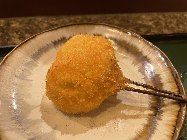 串揚げは、予約無しでもコースが頂けました。(ストップをかけるまで、一本づつ、揚げたてが出てくるスタイル)