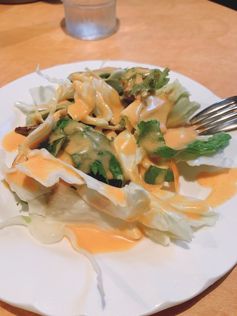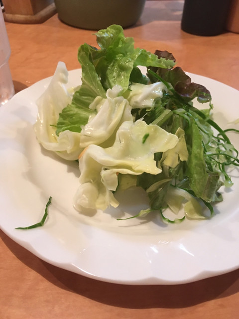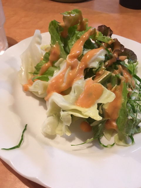 カツカレーを注文。すぐに出てくるサラダが嬉しい。(’15/11)