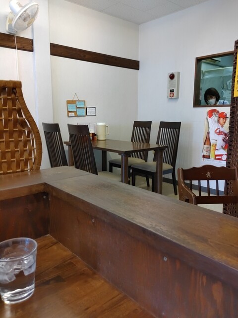 こちらも駐車場完備。店内はカウンター席とテーブル席が3つと席数が少ないので昼時は少々混みます。この日は7,8分で席が空きました。