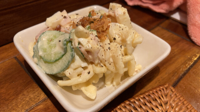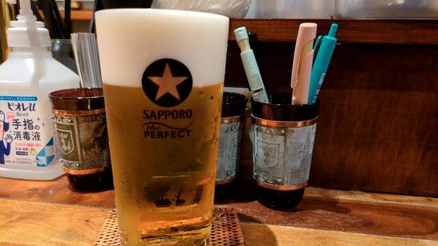 本日は黒ラベルの生ビールを2杯と自慢のポテトサラダをいただきました。