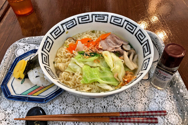 目の前に明神湯という歴史がある銭湯があるので湯上りのオッサン客が多いのか湯上りセットなんてメニューもある。黒板に書いてある「インスタントラーメン 肉、野菜、玉子入り 400円」というメニューにもそそられますねぇ(* ̄∀ ̄)