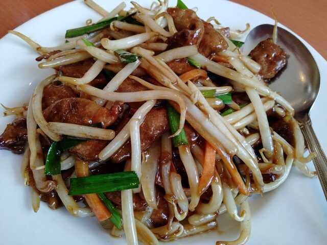 ニラレバー炒めセット(700円) 通常レバニラ炒めと言うがここではニラレバー炒めらしい。