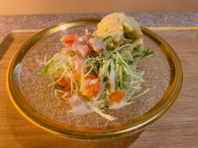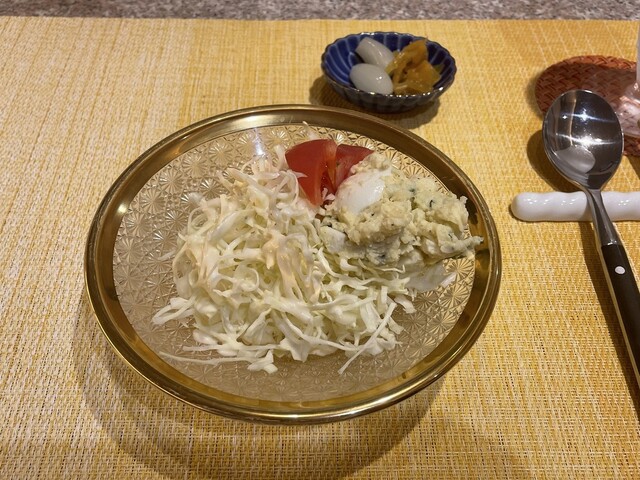 小雨が降って肌寒かったのでこのメニューにしました。生野菜とポテトサラダの盛り合わせ・選らんだ小鉢:チンジャオロース・ご飯が付いて来ます。鉄鍋に入って熱々の「鶏鍋」は暖まりますし,良いお出汁で最後...