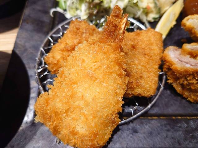 「カレーうどん」+トッピング:ミルフィーユかつ(ハーフ)・海老フライ(2尾)+小鉢:胡瓜の酢の物(山芋・カニかま・みょうが・もずく入り)+ご飯(小)