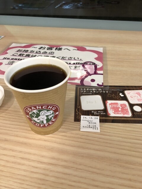 私はうさんちゅバケット450円とオレンジジュース400円を相方はうさぎのはなくソフトクリームバニラ500円とカフェオレ450円を子供はバニラソフト400円、オレンジジュース400円を購入。カフェオレはアイスかホットかどちらにするか聞かれアイスにしました。