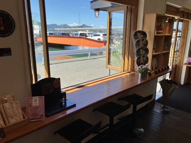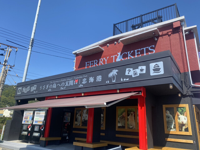 大久野島に向かうフェリーのチケット売り場。時間の計算を間違えたカントナは、しばしチケット売り場でのお土産散策で時間潰しであります。