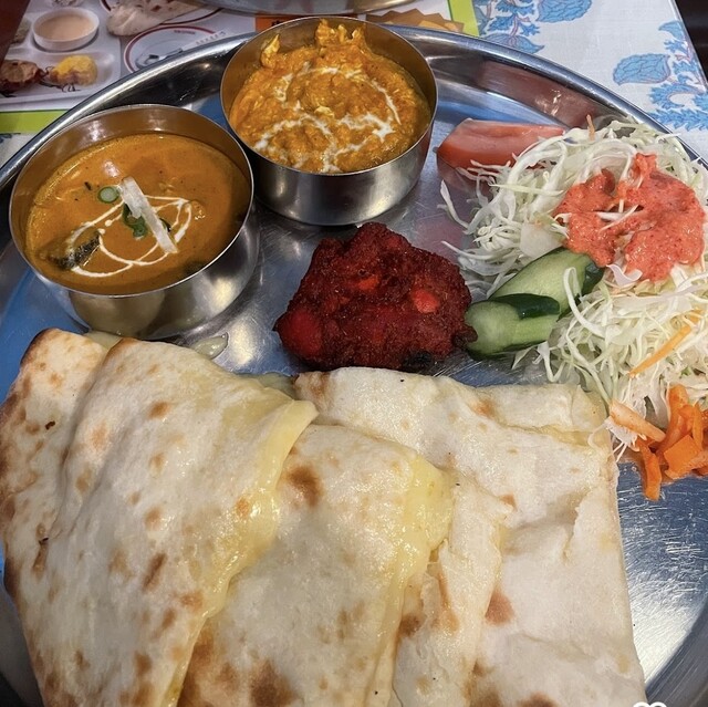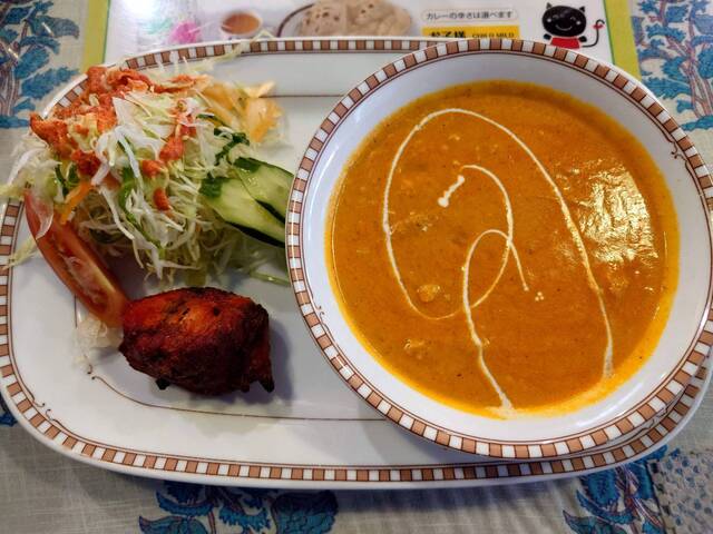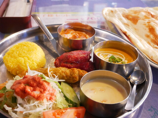 お店のスタッフさんも外国(インド?)の方だが、日本語はちゃんと問題なく通じる。店内に入るとスパイスの良い香りがして、気分も上がる。セットを注文、カレーを2種選択、ミニサラダ、チキ...