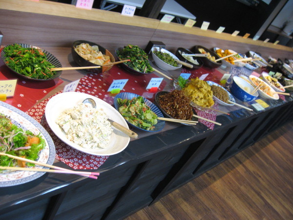 こちらのお店では、地元の新鮮な野菜と惣菜を中心としたバイキングが楽しめます。