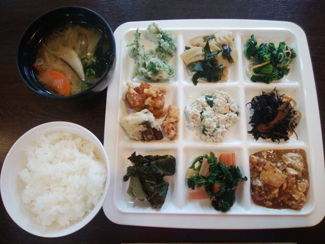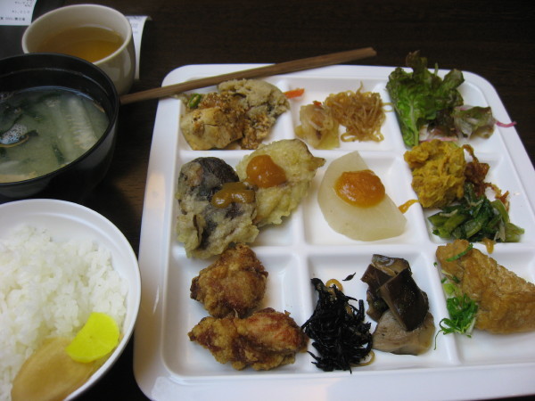 ほうれん草の白和え、たけのこの土佐煮、卯の花といった惣菜だけでなく、蕎麦や唐揚げ、ハンバーグや天ぷらなども提供されています。