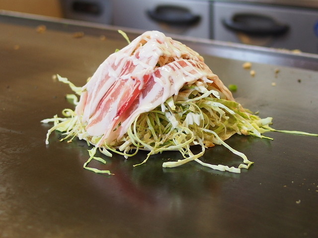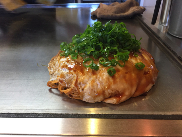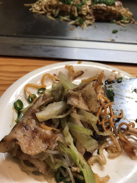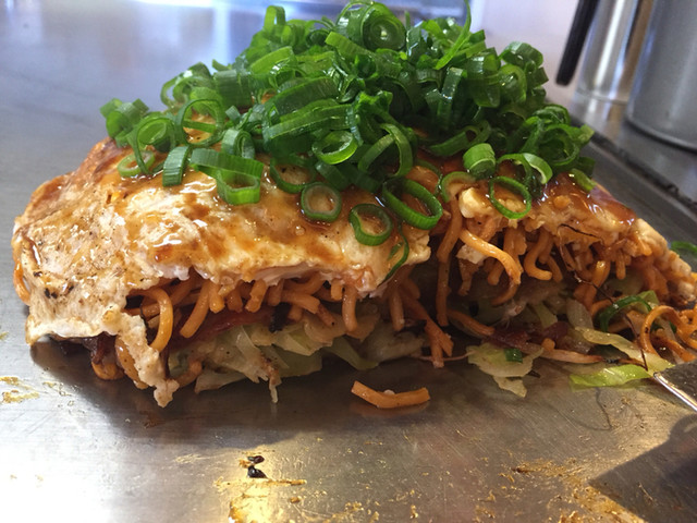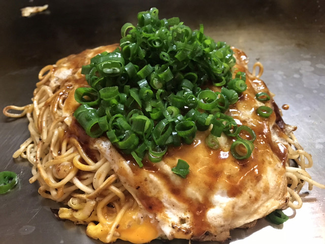 「一番人気のイカ天入りねぎかけ肉玉そば880円」を食べる事にしました。 玉子を割って鉄板の上に落とし周りの白身だけを丸く綺麗に広げて黄身はヘラでチョンと1回突いてすぐにお好み焼き本体を乗せてしばらく焼いたらすぐにひっくり返しお好みソースを塗り青のりをふりネギを乗せて出来上がりです。 玉子... 続きを読む»