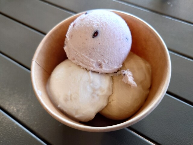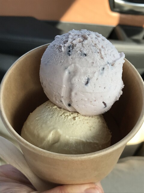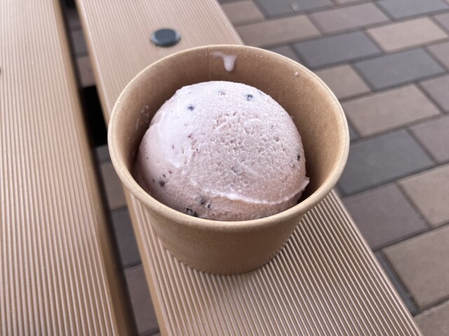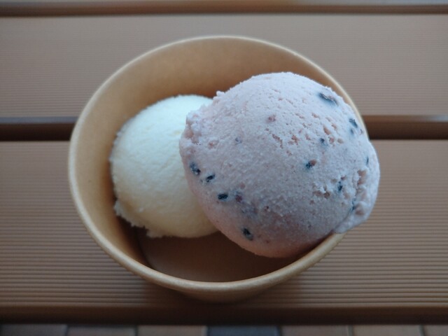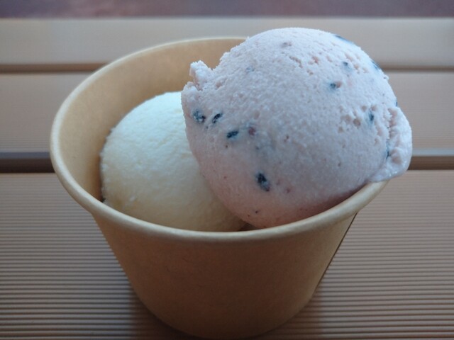 店名にある“縄文”と“あいす”が自分の中でうまく結びつかなかったが,安芸高田市向原町の特産品である古代米(黒米)を使用していることが関係しているようだ。