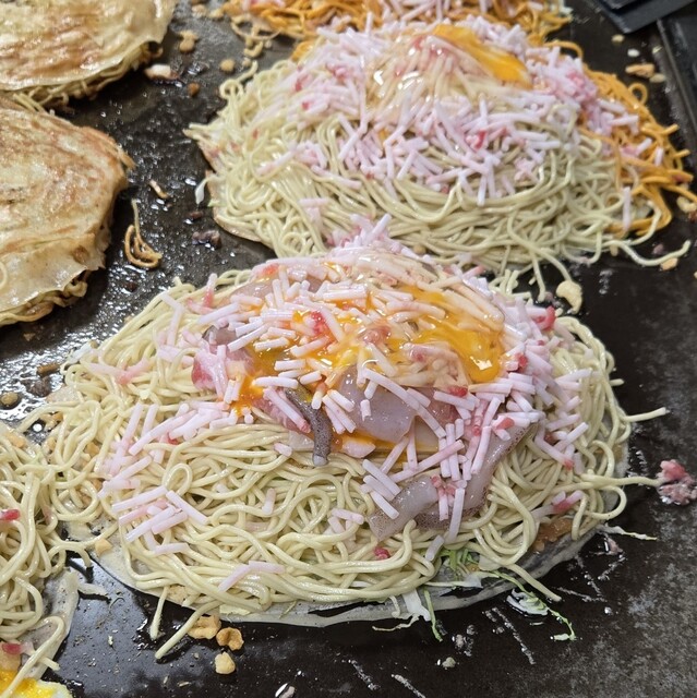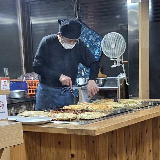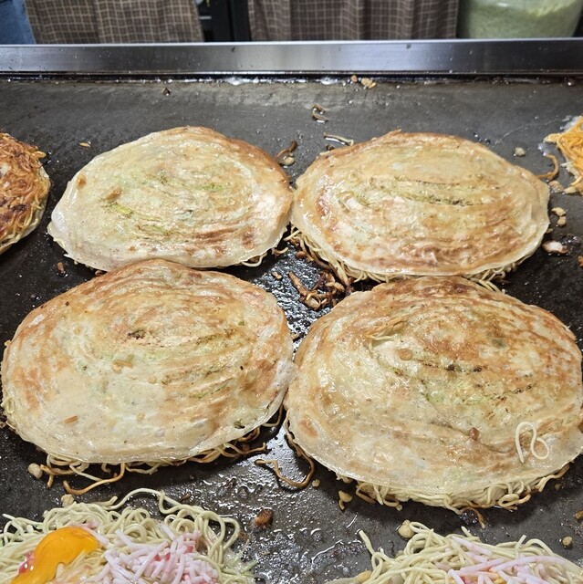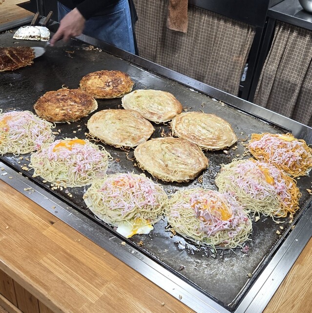 広島のお好み焼きとは少し違った、府中焼きを堪能できるこちらのお店。2024年2025年お好み焼き百名店に選出されています。