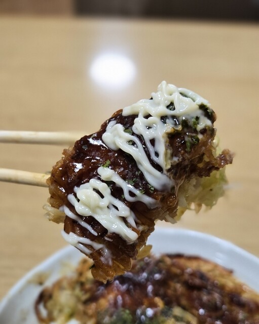 三連休の中日、訪問前日に電話で予約した上で伺いました。電話予約時には注文するメニューを確認されるので、電話する前に、「何を注文するのか」を決めておく必要があります。 当日は、開店時刻の午前11時に入店しましたが、鉄板の上にはすでに3列×6列=18枚のお好み焼きがスタンバイ中。電話もひっきりなし... 詳細を見る