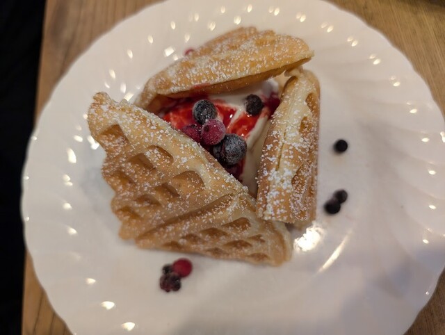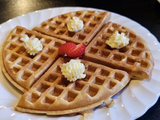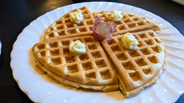 ロープウェイの発着場近くにある喫茶店です。ワッフルの種類が豊富で3種類いただきました。どれも優しい味で美味しかったです。飲み物もユニークな種類があり、楽しめました。駐車場も数台停められます。味のある店...