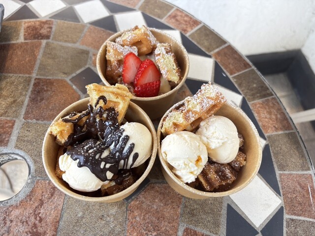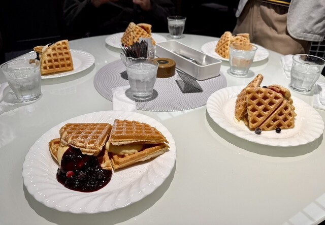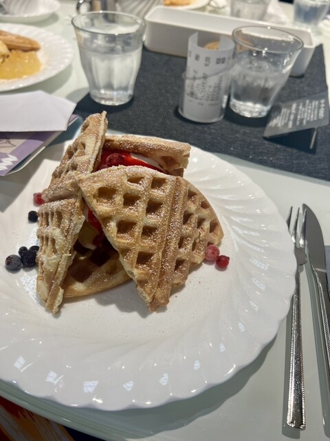 ガーン…ということで、すぐ横を見たらこのお店が。綺麗でおしゃれなかわいいお店です。とりあえず入り、ワッフル注文。