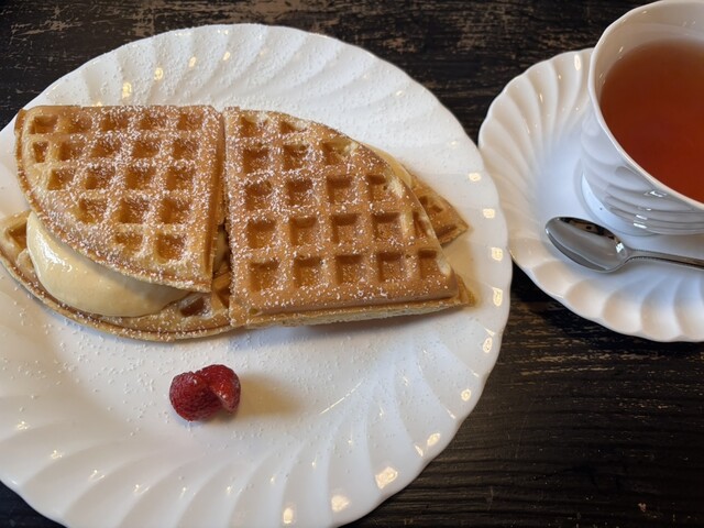 レモンティー←レモンは自分好みで入れるタイプ。若干苦味が出てきた辺りで救出。オシャレなレトロ喫茶店で飲むから美味しさが増す気がする!ワッフルもいただいたけどこちらもふわっふわで美味しい!