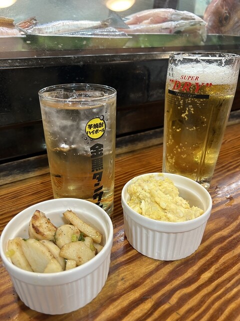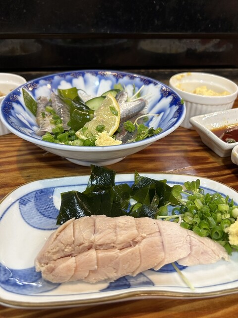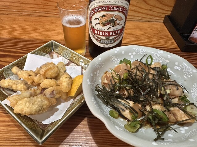 尾道駅のすぐそばにある居酒屋です。 老夫婦とお孫さん?と思われる方、3人で切り盛りしてあります。 まずお通しのポテトサラダが大変絶品で期待値が膨らんで行きます。 頼んだのは鳥わさ、砂肝の天ぷら、焼きなすです。 団体がいたので少し注文して時間がかかりました。 鳥わさは尾道... 詳細を見る