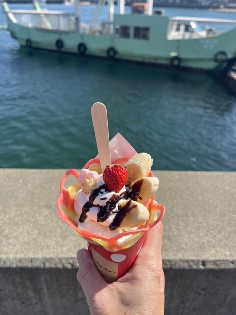 尾道ラーメンを食べ、天気が良いので海岸線をぶらついていると、クレープ屋さんを発見。先客が2人いたので、その間に外看板のメニューを拝見。え!?安❗️大阪やと倍くらいするんちゃうやろか... 詳細を見る