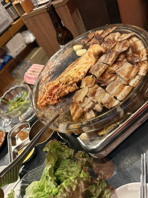 友人との訪問。 サムギョプサルコース食べ放題をオーダー。 最初は店員さんが目の前でサムギョプサルを作っていただいてから実食。 サンチュやニンニク、焼いたキムチなど... 詳細を見る