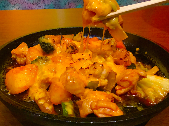 スキレット、チーズダッカルビ (by お店)