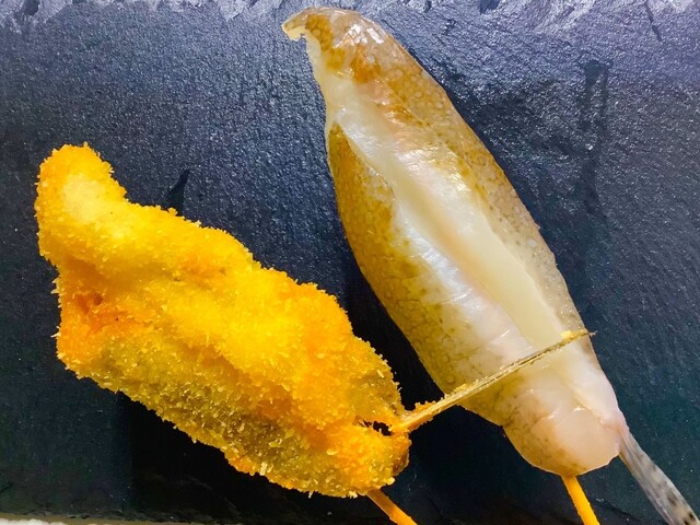 手始めにキス串、牡蠣、ソデイカの下足を注文。
