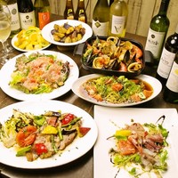 北海道内外の漁師さん直送の魚介料理、お肉料理、イタリア産グラナパダーノの巨大ホールチーズで仕上げるパスタなどバラエティーに富んだメニューに、生ビール、ワイン、スパークリングに加え、自家製の生野菜カクテルを含む「飲み放題」も人気!