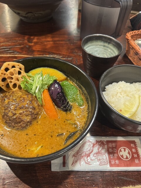 スープカレーといえばのココ!絶品えびだしスープカレーと肉汁ハンバーグのマリアじゅう~☆