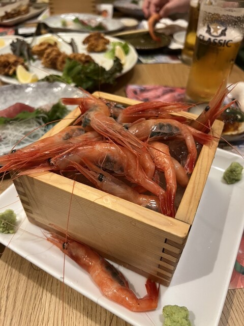 増毛港で水揚げされた新鮮魚介を水産会社から直接仕入れ。旬の味覚をお届けします。おすすめは増毛の新鮮な甘エビを五合マスに盛った豪快な一品「甘エビ ます盛り」。明治15年に増毛の地で創業した、日本最北の酒蔵「国稀酒蔵」の地酒とともにお楽しみください。掘りごたつ式の小上がり席を完備しておりますので、宴会でのご利用もどうぞ。