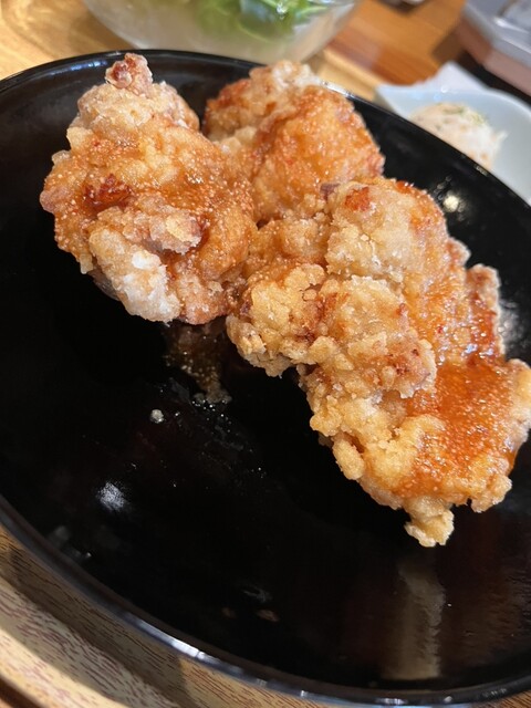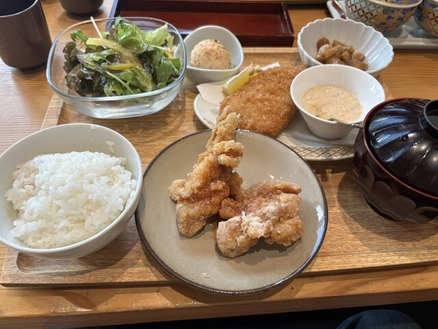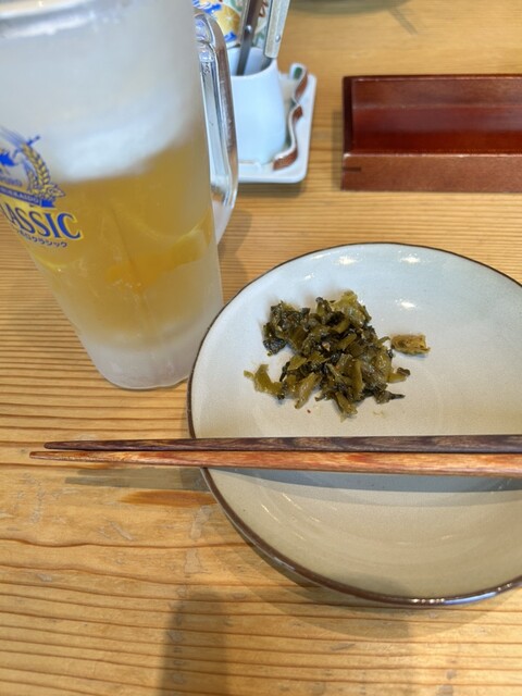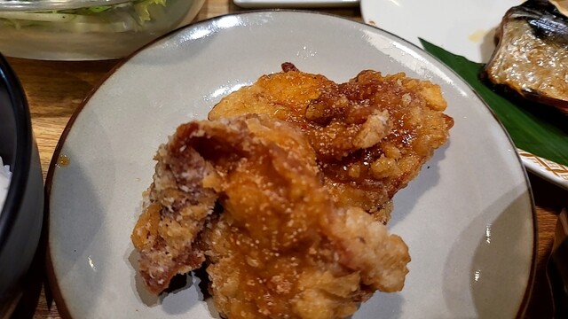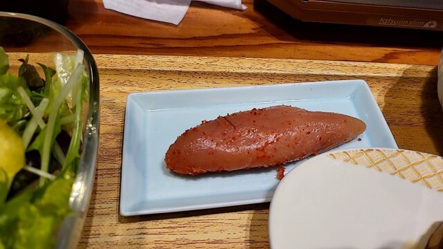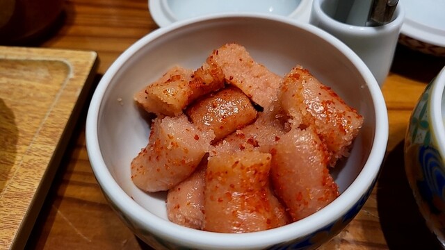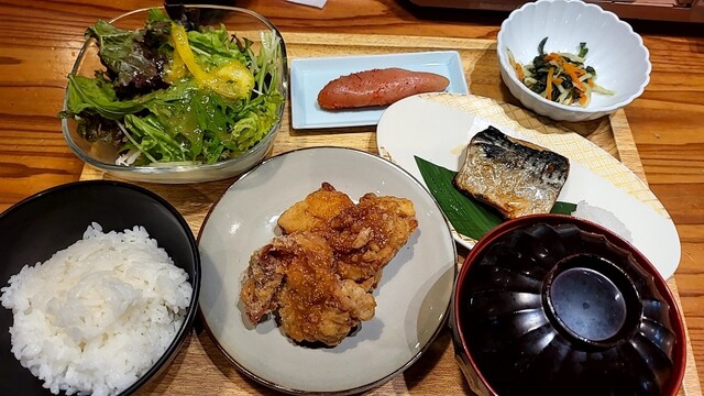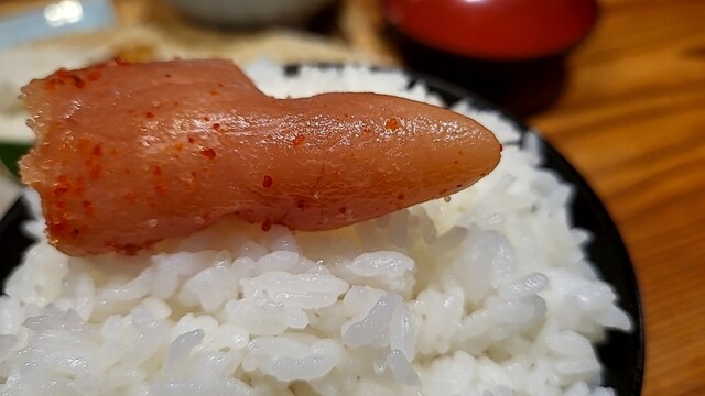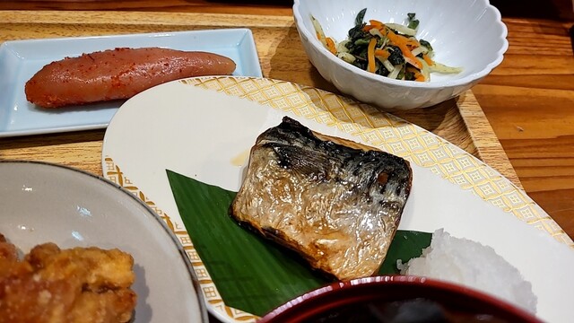 明太子ランチ、今日はとり天定食にします。とり天はなんと5個もあります、さらに立派な1本物の明太子付き、和え物も好みな味つけ。ご飯がまた美味しい、米が進むわ。流石にご飯は二膳でギブ。明太子茶漬けも食べたかったなぁー。あ、一緒に行った人はさば味噌定食でした。