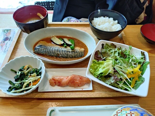 ランチです、本日の日替りはサバ味噌チョイス、共のOちゃんは唐揚げめんたい風味定食、なかなかサバ味噌のボリュームがあり、しかも明太子が食べ放題。...