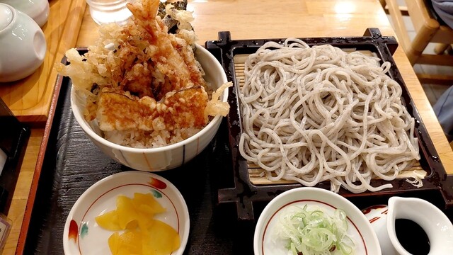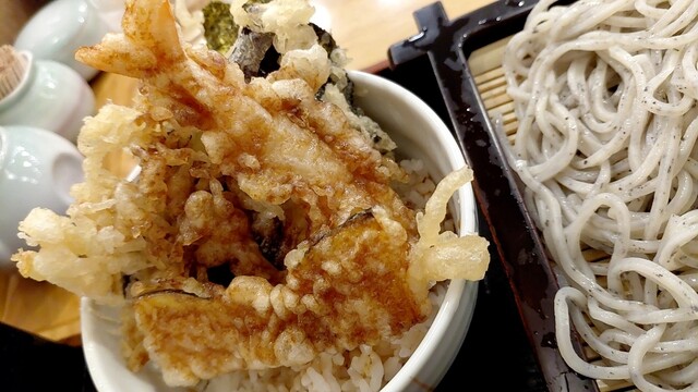 やぁ~疲れた…まだ、明日も、仕事何すが∵取り敢えず、冷たい蕎麦でも食べるか‼️で、登場すぅ…。遊鶴(アピア店)へとぉ…久し振りダァ~ゼェ-ッウ☆☆☆席に通され→オーダーは、鶏親子天丼セット(麺大盛+120円)とぉ…食ってヤルゼェ-ッウで、待つコト15 分位で、ドカンっと登場すぅ…。やはり、盛り‥ボリュームが壮観すぅ…。早速頂きまぁ~すぅ…お味、胡麻蕎麦…ヨク分からない?まぁ~美味しいんでしょとぉ…...