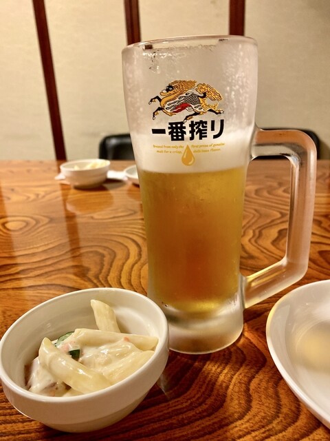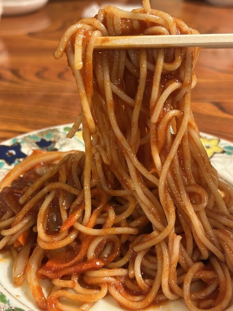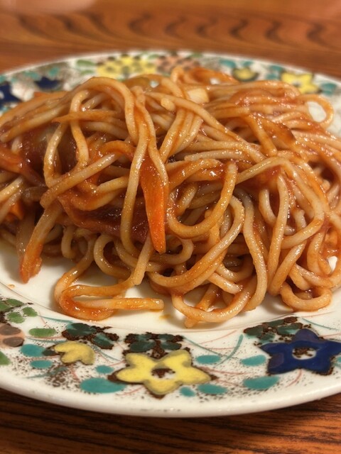 ドリンクは一番搾り(290円)と午後の紅茶無糖(250円)( ' ' )♡クーポン使ってハムカツサービス♡♡お料理の提供は早くてすぐ出てきます。ナポリタン...あれ?前と麺も...