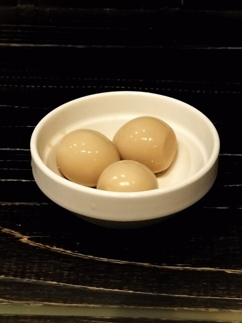 味付けうずらの卵が3個。席料では無く、お通しが付くことに感謝しながら有り難く頂きました♪