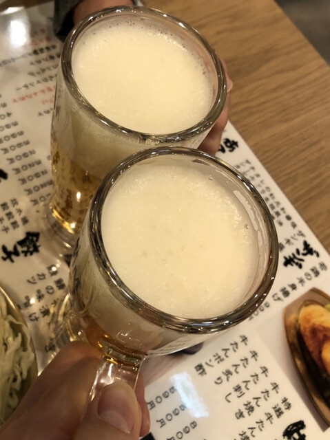 最初はみんな生ビールをジョッキで乾杯です♪