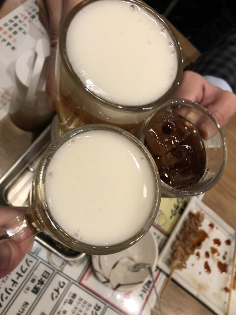 モツの美味しさが、生ビールとぴったりですねー