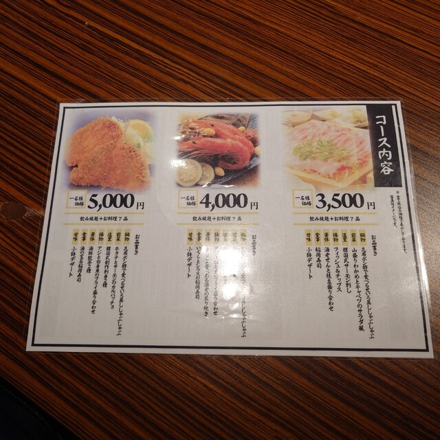 | コース | 飲み放題、3時間以上飲み放題、食べ放題 |