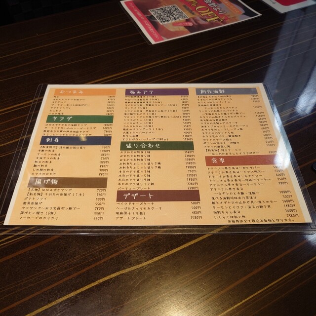 オーダーはQRコードから。美味しいものが多いけど、やっぱりここは海鮮系が旨い。お刺身は頼まなきゃ。