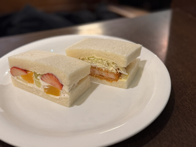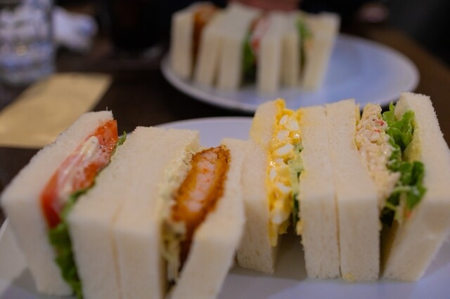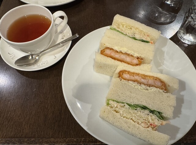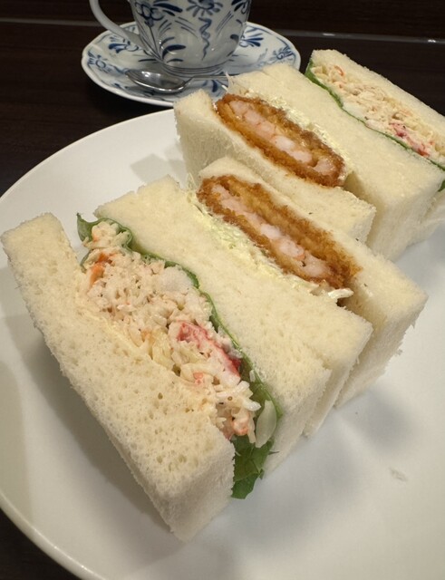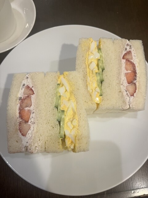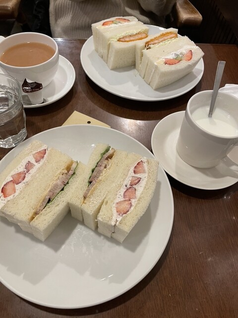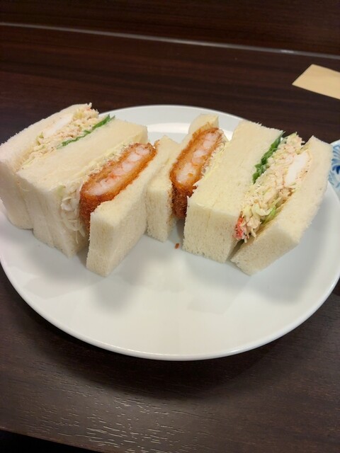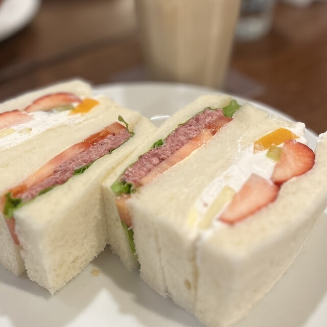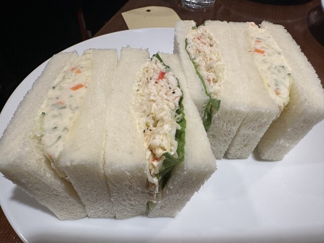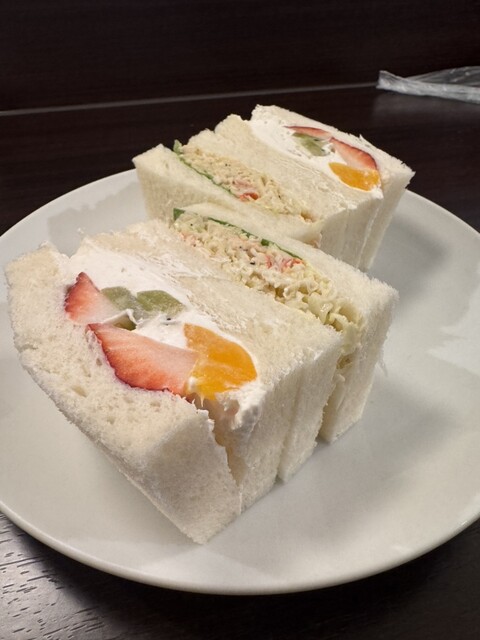 友達がカニサンドイッチを1つくれましたが、とても美味しかったです。カニと野菜が上手に合わさっていてアッサリしていてとてもいい感じでした!フルーツサンドは苺を初め生クリームも新鮮で美味しかったです!卵サ...