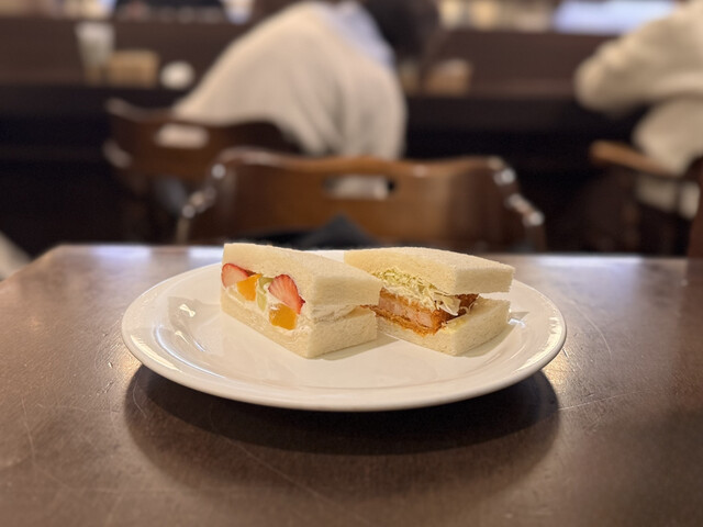 朝10時30分ころ行くとほぼ満席でした。たまたま席空いてすぐ座れてラッキーでした。フルーツサンドイッチは苺にりんご、キウイなど挟まっていて新鮮なフルーツサンドでとても気に入りましたー!海老カツは揚げた...