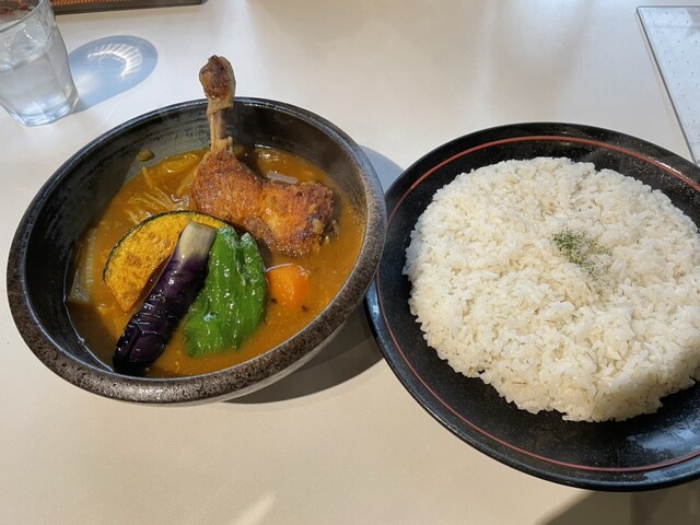 15分ほどで、ライスのセットと具沢山のスープカレ...