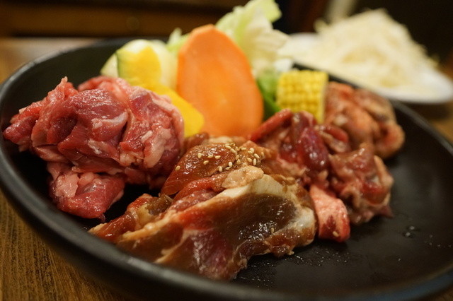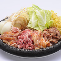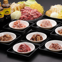 生ラム/特製味付け醤油ラム/特製味付け塩ラム/特製味付け味噌ラム/鶏焼肉/豚焼肉/牛カルビの中から4種類チョイス。お一人様プラス300円(税込)でお肉1種類追加できます。 ●食べ放題のみ・・・3,500円 ●ソフトドリンク飲み放題付・・・3,850円 ●食べ飲み放題・・・5,000円