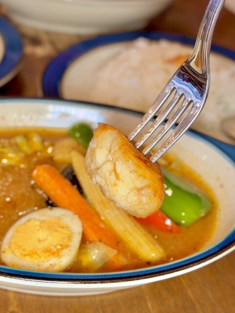 2017年8月17日放送の「秘密のケンミンショー」で当店の【ラムしゃぶと季節野菜のスープカレー】が紹介されました! インカのめざめとブルーチーズのコロッケやウニ風味のクリームソースを挟んだ海老フライ等、オリジナルトッピングも大人気です!