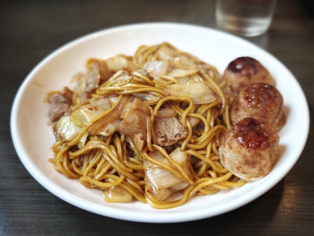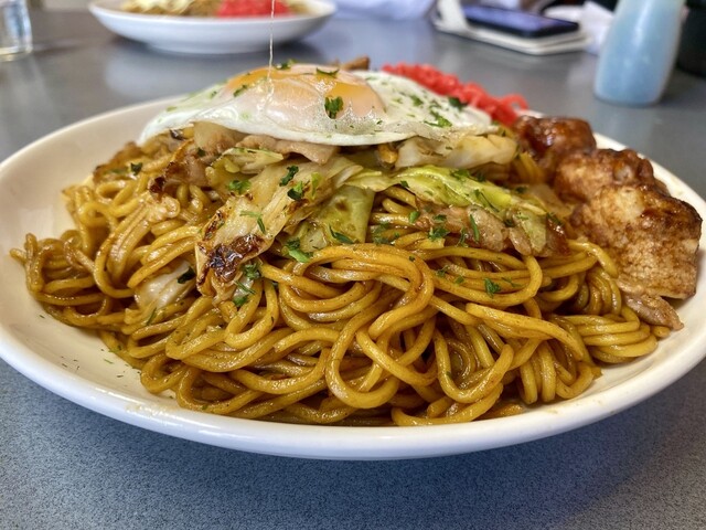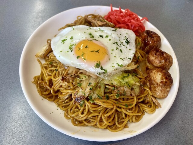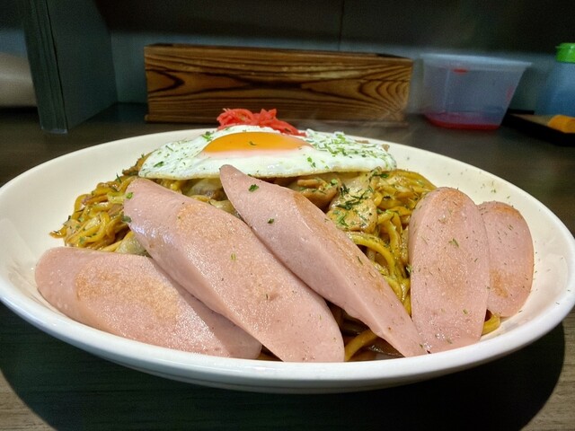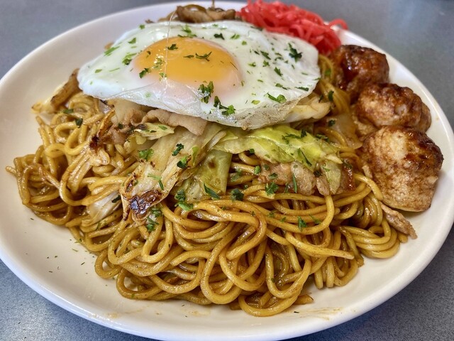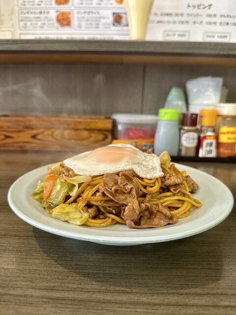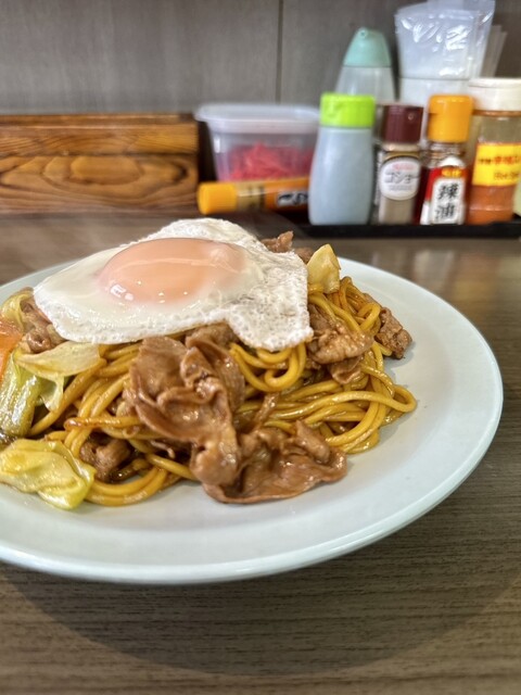 休日12:55訪問でほぼ満席も入れ替えで着席。 後客はパラパラ。 オーダーは今回は小生の基本、 ◆「ソース焼きそば(中盛)(600円)」 ・目玉焼き(50円) ・ギョ... 詳細を見る