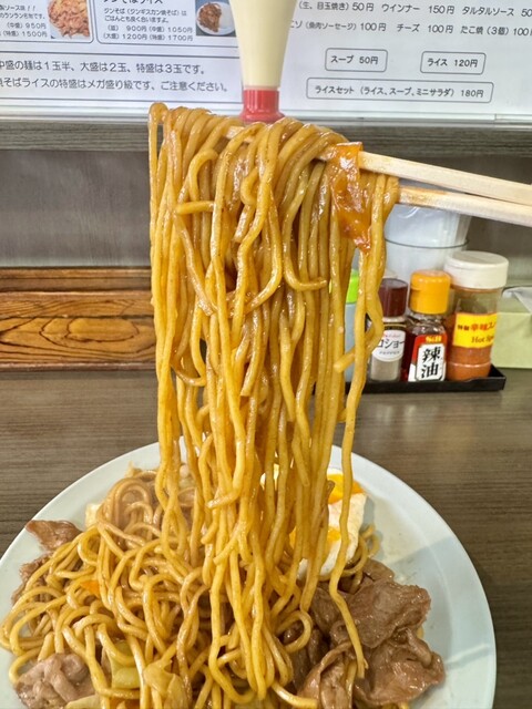 そうなんです この時代にあってやきそば並盛500円 目を疑うような値段でやっています 中央区役所すぐそば 午後1時過ぎ 雨模様で寒い カウンターに空席があり すぐに着席できた ソース焼きそば大盛700円 中盛600円は1.5玉、大盛は2玉です 値段を抑えながら キャ... 詳細を見る