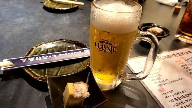 ドリンクは飲み放題にしてサッポロクラシック。最近美味しい牡蠣を食べられていなかったので生牡蠣を4個注文。さっそく運ばれてきた生牡蠣を食べると塩っぱいのなんの。先日他の店で食べた塩っぱい生牡蠣と同レベルかそれ以上。しかも一つは味も食感も悪いやつ...