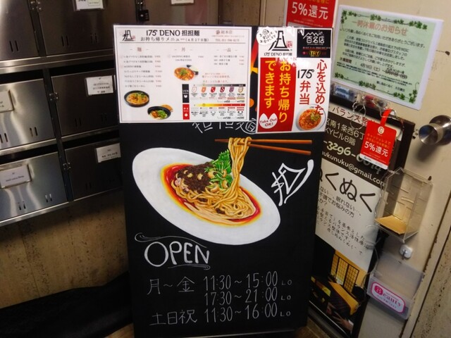 創業当初から札幌市民の圧倒的評価で有名店の仲間入りをした”175°DENO~担担麺~”。連日担担麺の香りに誘われた常連が列をなす。黒を基調とした店内で、人気のカウンター、奥には4名がけのテーブルも揃う。中国の四川省で直接買い付けている花椒と、辛いものが苦手な方でも食べられるように、と店主の想いが詰まったこだわりのラー油。香り高い北海道産ゆめちからの小麦を使ったもっちりとした麺に、花椒、ラー油が良く...絡み病み付きに。常連様に愛される175°DENO~担担麺~の発祥、本店。本場の味を楽しんでほしい。