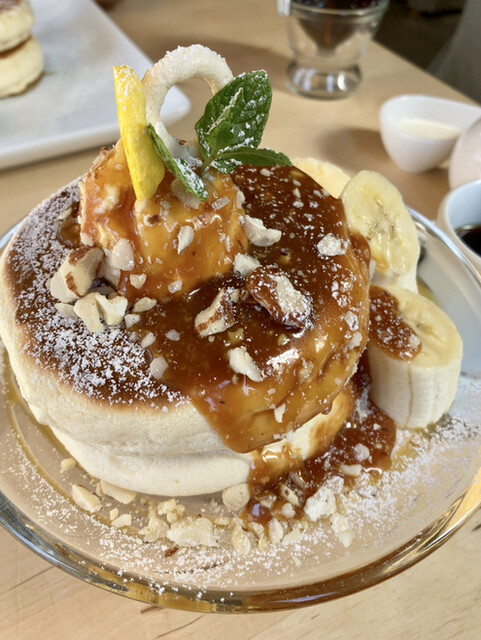ふわとろの食感と、可愛らしい見た目に夢中になる人が後を絶たない人気店。季節によってフルーツや食材を組み合わせた、リコッタチーズ入りのぱんけーきは分厚く2枚提供されますが、ぺろりと食べられてしまう軽さです。