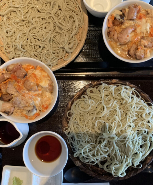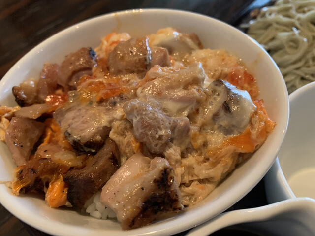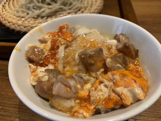 親子丼は焦げ目の入った赤鶏、濃厚で加減の良い玉子、絶妙な味わいの出汁、そして白飯も良くてこちらも満足。そして作って頂いたそばがき風きのこクリームソース(名称失念)もザクリ食感で香ばしく豊かな蕎麦の風味に、チーズときのこの風味が溶けだしたトロトロクリームが良く合う。これば同行の女性も大満足、もっとソースを食べたいとの事だった。